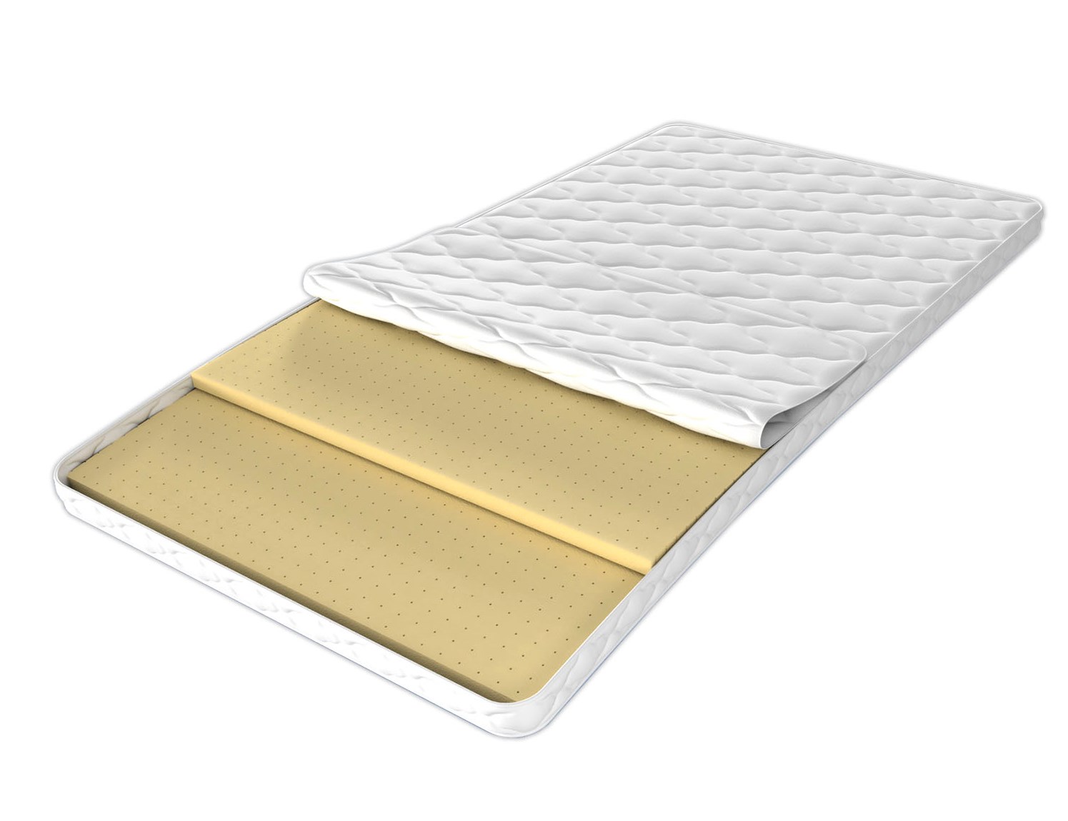 В основе данного наматрасника лежат два трехсантиметровых слоя натурального латекса, который обладает прекрасными анатомическими свойствами, обеспечивая повышенный комфорт спальному месту. Этот мягкий и эластичный материал выдерживает большие нагрузки и быстро восстанавливается после деформаций.